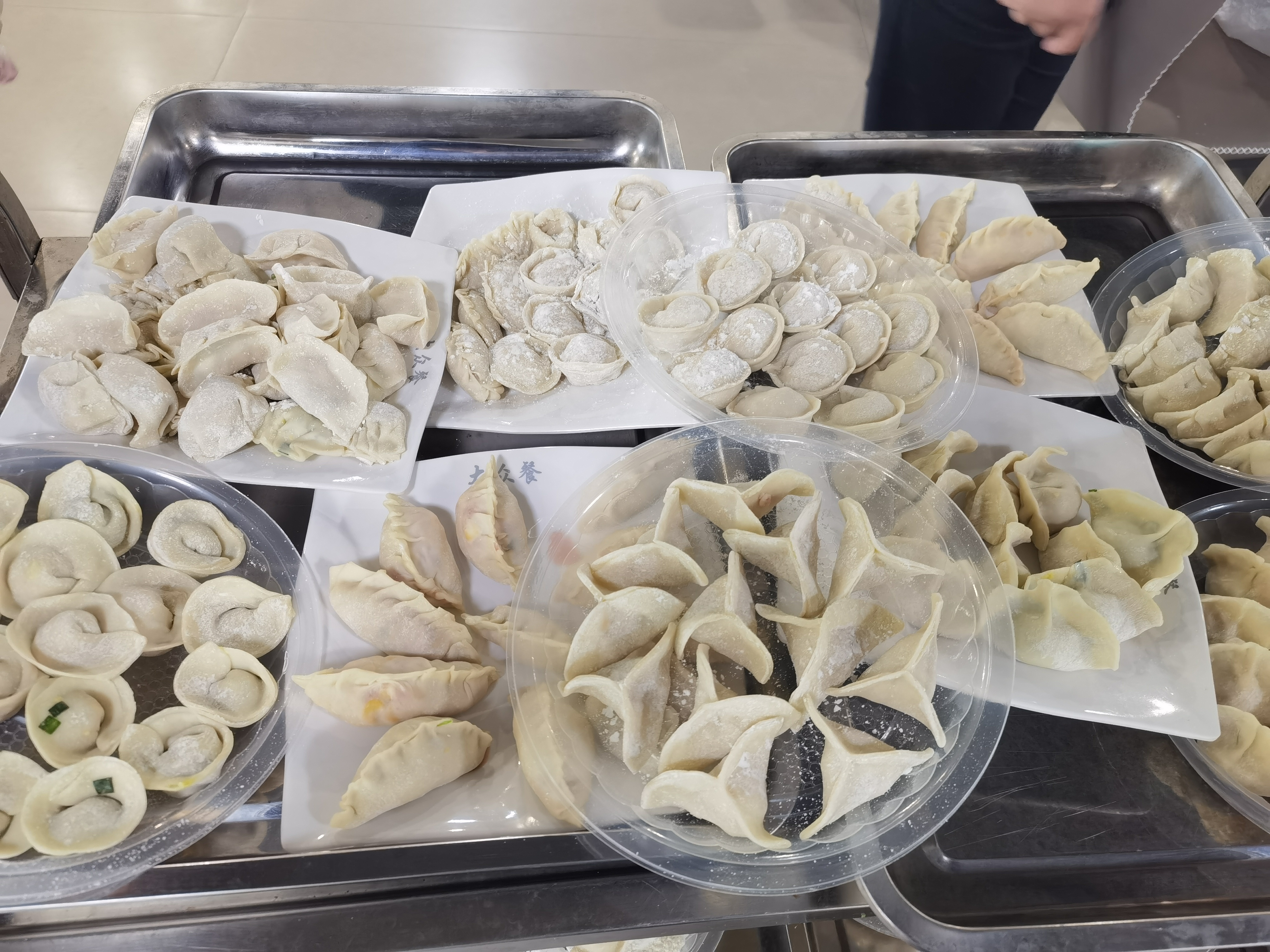 活动现场,气氛既紧张热烈,又温馨融洽。参赛者们神情专注,手指翻飞。面团在巧手下被快速擀成圆润的面皮,各色馅料被精准地包裹其中。转瞬间,形态各异的饺子便摆满了桌面:有月牙状的经典款式,有麦穗边的精致造型,更有师生们创意十足的自创“作品”,真正是“百花齐放,大放异彩”。师生的欢声笑语、互相请教技艺的低声交流、计时器滴答的轻微声响,交织成一曲生动的劳动乐章,活泼中透着比赛的严肃,其乐融融里不乏井然有序。