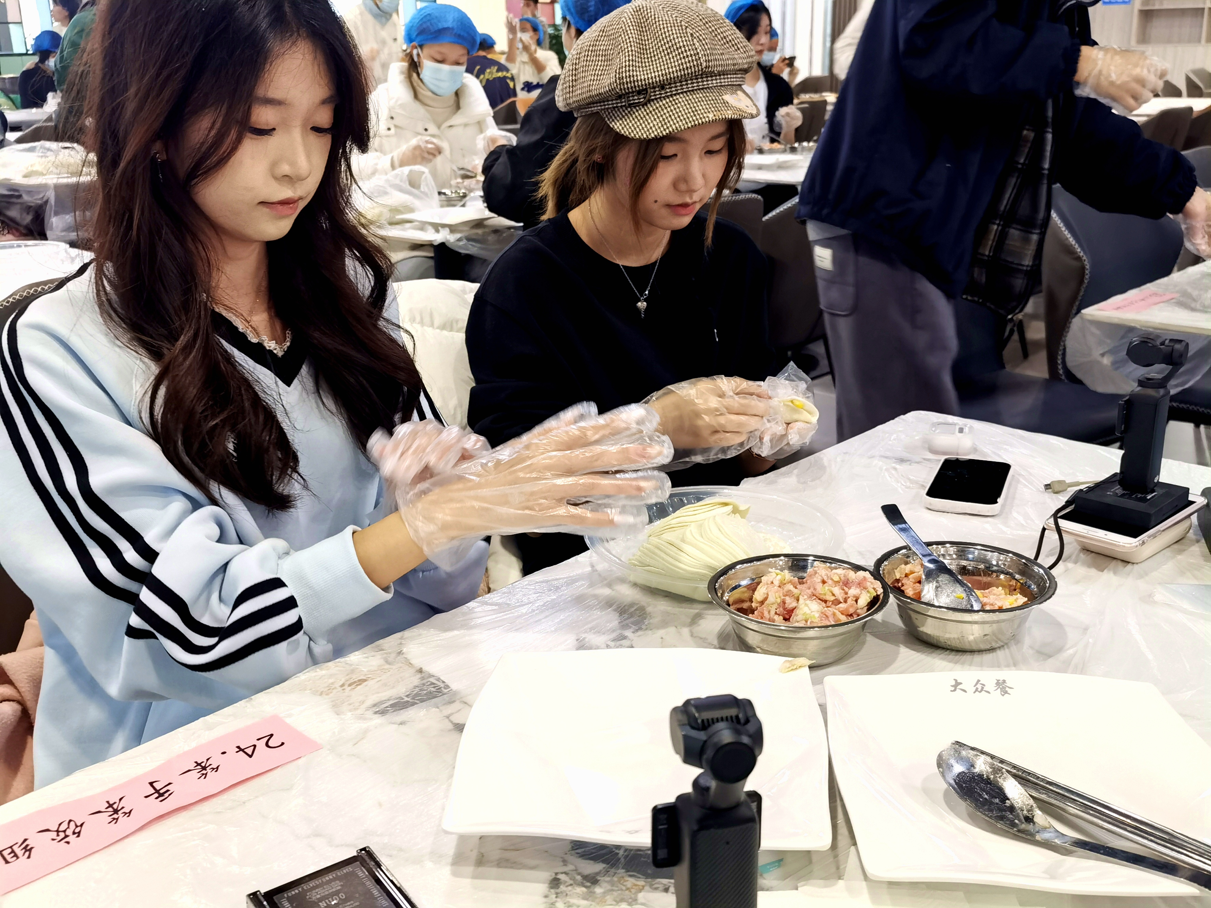 12月4日下午,华珠肇庆(四会)校区的北苑餐厅举行了一场别开生面的包饺子比赛。这里是学校第三届“服务育人专业技能大赛”的分会场之一,来自学校各单位的50名师生代表,经过层层推荐,齐聚一堂,共同上演一场指尖上的艺术与劳动实践的交融盛宴。